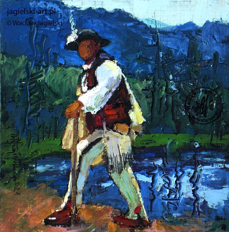 "Przewodnik" 11 cm x 11 cm olej 2021
