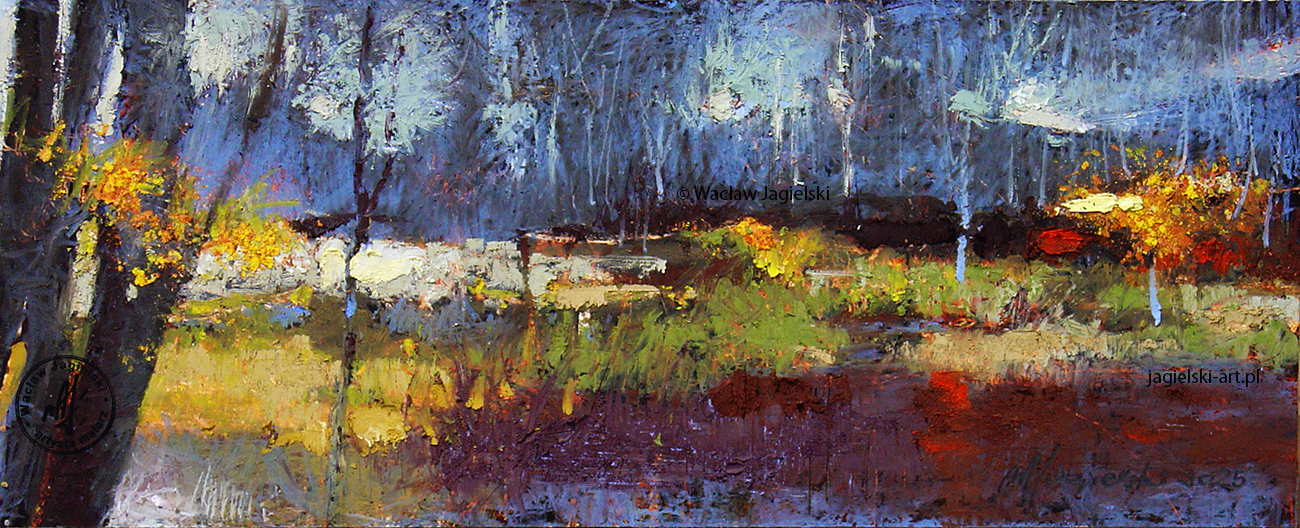 "Próba bilokacji" 20 cm x 50 cm olej 2025